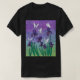 É verão. Os irlandeses estão florescendo. Os irlandeses estão florescendo em longos e resistentes caules sinuosos. Suas pétalas são uma lavagem de roxo variegado: violeta e ameixa. Seus caules estão saturados de verde senso. O céu de verão é uma lavagem estriada de cor: púrpura lilás, violeta, cretino, azul aqua e verde primavera. Várias borboletas estilizadas flutuzam sobre as flores. Suas asas são amarelas, brancas e azuis. É uma ilustração de verão caprichosa, perfeita para qualquer um que ama irlandeses.