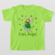 Anjo Irlandês Adorável vestindo vestido verde e jogando sortudos Shamrocks no ar. Um desenho encantador para qualquer momento, mas perfeito para Ruas. O texto diz Irish Angel.
