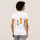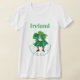 T-shirt de Dia de São Patrício com um Leprechaun dançante na frente e um mapa da Irlanda no verso com as cores verdes brancas e laranja na bandeira da Irlanda.