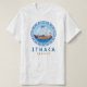 Ítaca, T-Shirt de Grécia com design de um antigo navio grego e letra grega. Esta design apresenta um navio de Grécia Antigo e o padrão das linhas chave gregas em um círculo com o mar e o céu. Este design do estilo grego faz deste chá um presente ou lembrança ideal ou para vestir enquanto você está de férias na ilha de Ithaca.