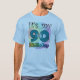 Een blauw verjaardags shirt voor iemand die negentig jaar is geworden. 90ste verjaardag. Met de tekst: It's my 90th birthday.
