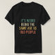 An amusing design reflects on the unique perspective of sharing the same age as older individuals, blending humor and empathy to foster relatable connections.