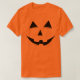 Uma divertida camisa de fantasia de halloween, uma mercadoria retrata uma imagem de abóbora de abóbora laranja, ilustrada por abóbora de jack-o-lanterna, num sorriso básico com três dentes engraçados, e olhos e nariz triangulares. Esquemas de cor laranja e preto.