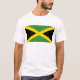 Bandeira da Jamaica. A bandeira da Jamaica foi adotada em 6 de agosto de 1962, o Dia da Independência Jamaicana original, o país que ganhou independência da Federação Britânica das Índias Ocidentais. A bandeira é constituída por um saco de ouro, que divide a bandeira em quatro seções: duas delas verdes (superior e inferior) e duas pretas (assovia e mosca). O design atual surgiu dos enviados pelo público em uma competição nacional. Ele foi originalmente projetado com faixas horizontais, mas isso foi considerado muito parecido com a bandeira Tanganyikan, e então a saleta foi substituída. Preto, verde e ouro são cores pan-africanas. Uma interpretação anterior das cores foi, "há dificuldades, mas a terra é verde e o sol brilha": o ouro lembra o sol brilhante, o preto reflete as dificuldades, e o verde representa a terra. Mas isso se transformou em preto, representando a força e a criatividade das pessoas que lhes permitiu superar as chances, amarelo para o sol ouro e verde para a vegetação exuberante da ilha.