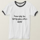 A t-shirt chegou dentro do tempo anunciado e apresentou-se com todas as características que estavam anunciadas. Boa qualidade do tecido e bons acabamentos. O tamanho veio conforme o pedido. Perfeita! Fiz apenas uma pequena personalização no texto, e o mesmo assim veio, bem como todo o restante texto, devidamente impresso e exactamente como estava anunciado na página. Sem falhas!