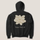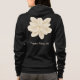 Design on the front and back of the hoodie. Your name is emblazoned in white script on the left pocket on the front. A large white jasmine blossom is depicted on the back. A huge, beautiful white flower. And your name, also in matching white script.