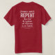 A t-shirt chegou dentro do tempo anunciado e apresentou-se com todas as características que estavam anunciadas. Boa qualidade do tecido e bons acabamentos. O tamanho veio conforme o pedido. Perfeita! Fiz apenas uma pequena personalização no texto, e o mesmo assim veio, bem como todo o restante texto, devidamente impresso e exactamente como estava anunciado na página. Sem falhas!