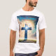 Proclamem a vossa fé em Jesus como o centro da vossa vida e do mundo com esta bela camiseta cristã. A imagem mostra o universo dentro da Cruz, e um sol brilhante se pôs em um céu brilhante atrás dela.