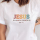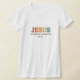 Faça uma declaração forte de sua fé com este design original que apresenta um verso na escritura bíblia, John 14:6, Jesus, o caminho, a verdade, a vida. Mostre seu amor e sua crença no Cristo de Jesus vestindo esta camisa única, pois ela oferece oportunidades para você se envolver com os outros sobre sua fé. Este design simples, mas atraente, apresenta cores brilhantes e duas fontes diferentes no estilo retrô. Adicione este item de roupa baseado em fé à sua própria coleção ou dê como presente especial a um ente querido. Faria um presente significativo para qualquer ocasião.