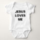 Um belo traje de camisa de bebê com a doce e reconfortante mensagem "Jesus me ama". Suave, acolhedora e perfeita para compartilhar sua pequena identidade cheia de fé.