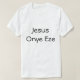 Uma camiseta fantástica, esta camisa diz "Jesus Onye Eze" que significa "Jesus o Rei" em Igbo. Com uma bela fonte preta, peça a sua hoje!