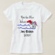 Votem na eleição presidencial de Joe Biden 2020. Humor político: Ande pela Onda Azul, camisa de apoio do Democrata. Um tubarão com um chapéu de gatinho pulando das ondas comendo um chapéu vermelho. Camisa Anti-Trump.