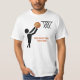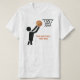 Jogador de basquete com t-shirt de bola que mostra um ícone minimalista de uma silhueta preta de um jogador de basquetebol a tentar colocar a bola laranja na cesta e o seu texto sobre fundo branco. Personalize-o e adicione o texto "Melhor jogador de basquete" ou monograma, nome ou mensagem. O presente perfeito para o jogador de basquete ou amante em sua vida. Alguns elementos são cortesia de vectorportal.com.