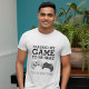 Camiseta de jogador humorístico com dois suportes de controle de computador, e o engraçado ditado "Eu pausei meu jogo para estar aqui, você é bem-vindo"