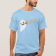 É uma design engraçada com um fantasma tocando um instrumento de vento e ele está cantando.
