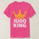 Uma imagem de um leão vestindo um cinturão preto e praticando judô, exuando força e confiança. O design é ousado e impactante, apelando aos entusiastas das artes marciais.