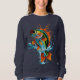 A bold women’s sweatshirt featuring a colorful fish leaping from water. Great for stylish anglers and sea lovers.