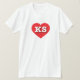 Esta camiseta apresenta um coração vermelho vibrante contendo as letras maiúsculas, brancas e em negrito KS, a abreviação oficial Kansas, o estado do girassol.