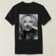 Camiseta Kate Moss, bigode, fotografia branca e preta