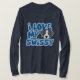 Camiseta suíço do cão da montanha do fio querido maior! Densamente, o texto azul dois-tonificado cerca uns desenhos animados do kawaii do grande cão suíço do gado. O design lê, "mim ama meu Swissy." Maior roupa suíço original do cão da montanha pelo desordem da mistura variada.