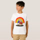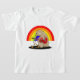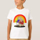 Um desenho animado de um kiwi tocando uma música em um violão acústico, sob um arco-íris. O adesivo no violão lê cintura, esta é a língua Te Reo / Maori para a música.