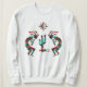 Esta é uma camiseta única "Um dos tipos" de mulheres do sudoeste de Kokopelli Hoodie! Ele apresenta dois Kokopelli sudoeste em Turquoise, laranja e preto tocando flauta e dançando em torno de um cacto debaixo do sol! Design De Arte Original Pelo Artista Kerry Miller.