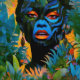 "Kuiráya" - Folha Pintada - Mulheres Na Amazônia. Com um olhar intenso, ela é tão impressionante e enigmática quanto uma folha marcada com os padrões da natureza, a sua tinta colorida e surreal misturada com a floresta, fazer-a como parte viva da paisagem em constante mutação da floresta.