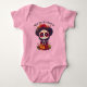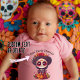 Este body rosa para bebês é uma homenagem doce e festiva ao Dia dos Mortos, apresentando uma adorável La Catrina em estilo kawaii. O fundo rosa suave fornece uma tela encantadora para o design vibrante e divertido, tornando-o uma escolha encantadora para celebrar esta tradição especial.