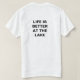 Camisa masculina/Unisex com logotipo Sunset Lake em vários tamanhos, cores e estilos Use o botão "Editar Design" para alterar o tamanho/a posição do logotipo Sunset Lake ou para modificar ou remover o texto "A vida é melhor no lago" no verso (incluindo a cor do texto).