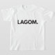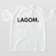 Esta camiseta casual e confortável é uma peça de moda de eterno obrigatória no seu guarda-roupa do dia a dia. Disponível em muitos designs, este exibe a palavra LAGOM. Lagom (pronunciada [lɑ̀ ː om]) é uma palavra sueca, o que significa "apenas o montante certo". O Lagom pode ser aplicado a todas as situações, desde a comida e a bebida até às emissões de direitos de autor e de dióxido de carbono.