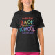 Celebre seu filho retornando à escola com esta colorida t-shirt Bem-vinda de volta à escola personalizada com o nome da escola, a nota, o ano, o nome do seu filho ou o que você quiser. De volta à Escola está escrito em uma design de tipografia divertida com lápis coloridos formando algumas das letras de um olhar peculiar em todas as cores do arco-íris com estrelas coloridas também. Boas-vindas personalizadas de volta à camiseta escolar com uma design de tipografia colorida do arco-íris.