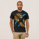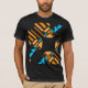 Um design artístico e ousado geométrico, com alguma influência da arte Nativa Americana e Sudoeste. Um design diagonal abstrato de formas e linhas é apresentado em azul-turquesa brilhante e cor-de-laranja claro. Foto aqui em uma camiseta preta (Canvas Bella), mas também disponível em vários estilos e cores, esta é uma design vívida e atraente, oferecendo uma adição elegante e animada para o seu roupa casual e cotidiano (seja para trabalho/escola, esportes/lazer, relaxamento/socialização ou apenas execução de tarefas). Esta camisa de "arte arável" pode iluminar a monotonia de viver em nosso mundo quase casualmente cansado, e contribui para um sentimento de estilo personalizado.
