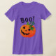 Este doce e fofo Jack O Lantern tem um sorriso feliz no rosto, e Boo! escrito acima. Você pode alterar o texto na frente e voltar para um nome ou mensagem de sua escolha. A camisa vem em crianças e tamanhos adultos e muitas cores diferentes.