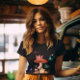 Camiseta Laranjas Mágicas Encantadas Fadas Cogumelos Negra