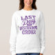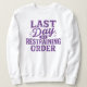 This distressed typographic design features the quote, “Last Day of Restraining Order,” in purple hue. Have you ever looked forward to something that seemed to take forever? Finally, no more stressing out about restrictions. Fly free!