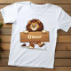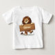 Esta divertida t-shirt personalizada de criança apresenta um lindo leão de desenho animado com um símbolo de nome de madeira de tamanho excessivo.