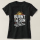 Este design apresenta a frase em negrito "Burnt by the Sun, Lost in Chapter One" em sans-serif branco nítido e um roteiro manuscrito em um plano de fundo preto sólido. Um ícone de sol aflita com um gradiente sutil de laranja e amarelo complementa o tema de leitura do verão com humor. Perfeito para visto casual por amantes de livros que desfrutam de uma nod espirituosa para queimaduras solares e escapadas de verão em histórias. Um na moda e uma peça inteligente para a roupa de Verão.