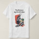 Camisa de biblioteca para um amante de gatos com uma ilustração divertida de uma estranha criatura de gato listrado preto e branco com pescoço longo em casa. Este estranho personagem fica em casa, sentado pacificamente numa cadeira laranja com olhos, relaxando e lendo um livro enigmático. Ela gosta de uma xícara de café quente em suas pantufas decoradas com olhos. A árvore tem o texto personalizável "Minha biblioteca é meu lugar favorito".