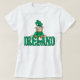 As características deste design irlandesas patrióticas bonitos um leprechaun pequenino vestido no verde com um trevo grande em seu chapéu que senta-se sobre a palavra "Ireland" no grande texto verde, e são perfeitas para mostrar seu orgulho irlandês durante celebrações do dia do seu St Patrick.