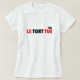"Le tort tue" é um design gráfico ousado e provocador que toca no homofone francês entre "tortue" (tartaruga) e "le tort tue" ("matares errados" ou "matares de injustiça"). A frase é renderizada em letras grandes e impressionantes, com uma fonte sans-serif moderna em preto, branco e vermelho — um esquema de cores simbolizando clareza, urgência e força.