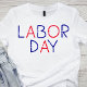 Camiseta Letra Vermelha e Azul no Dia do Trabalho