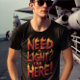 Camiseta Letras Flamejantes Precisam De Luz? Estou aqui!