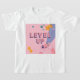 This is a colorful digital illustration with a gaming theme. The text "LEVEL UP" is prominently displayed in large pink letters with a dark blue outline, set against a light pink and pale blue segmented background. Below the text, two hands are shown holding a pink video game controller with green buttons. Yellow and teal star shapes and yellow circles are scattered around the text and hands. The overall style is playful and suggests progress or achievement in gaming. The bright colors and simple shapes contribute to a fun and engaging aesthetic.