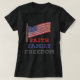 Patriotas unem-se! Você ama sua bandeira, ama sua fé, sua família e sua liberdade. Pegue esta design com a bandeira dos Estados Unidos da América com a frase "Liberdade Familiar Fé". Excelente para as comemorações do Dia da Independência de 4 de julho. Um pouco de brilho/ "angústia".