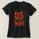 Uma ilustração digital da frase Lidar com ela humana escrita em letras vermelho e amarelo em negrito que se parecem com chamas. O fundo é uma cinza leve.