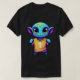 "Esse adorável design apresenta uma alienígena pequena, em estilo cartoon, com pele azul brilhante, olhos laranja expressivos grandes e um sorriso alegre. Está vestindo uma simples camiseta amarela e tem pequenos pés e mãos. Este bonitinho extraterrestre tem uma aparência amigável e convidativa. Este design lúdico é perfeito para uma gama de produtos destinados às crianças ou a quem gosta de personagens caprichosos. Imaginem-no na roupa das crianças, adesivos divertidos, artigos de papelaria divertidos, ou decoração caseira encantadora."