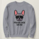 Esta camisola de Bulldog francesa faz o presente perfeito para Dia de as mães e aniversários. É ideal para dar a uma mãe de cão do seu amado francês. O design apresenta uma ilustração do rosto do Bulldog francês lilás e bronzeado com espaço para adicionar seu próprio texto.