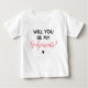Peça aos que você deseja que sejam padrinhos do seu filho com esta camiseta super fofa. Faça sua bebê usar isso e use para fazer a pergunta "Será que você será meu padrinho" em uma combinação de texto em rosa e preto!