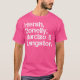 A t-shirt chegou dentro do tempo anunciado e apresentou-se com todas as características que estavam anunciadas. Boa qualidade do tecido e bons acabamentos. O tamanho veio conforme o pedido. Perfeita! Fiz apenas uma pequena personalização no texto, e o mesmo assim veio, bem como todo o restante texto, devidamente impresso e exactamente como estava anunciado na página. Sem falhas!