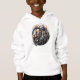 Imagem é uma ilustração digital que apresenta uma cabeça estilizada de leão com uma mão impressionante composta por fios ondulantes e fluidos em tons de laranja, branco e preto.